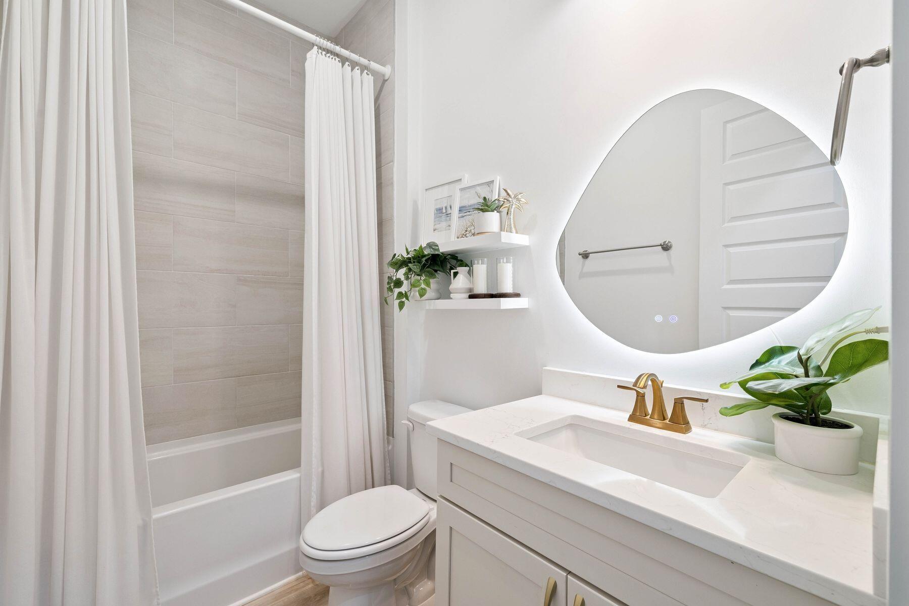 Built in 2024, this picture-perfect home is a gem. Nestled among mature trees and backing up to green space, it enjoys a serene, private location. The front yard has a broad driveway approaching a three-car garage and a shady covered porch. Showcasing a host of upgrades, this delightful Florida cottage is laid out all on one level with dormer windows in the roof providing added appeal. The spacious open living room has ample space for family life and entertaining, yet each designated area retains a cozy feel. The outstanding chef's kitchen is the hub of the home with premium maple bisque cabinetry and cool quartz countertops, providing a practical space to inspire any cook. A range of KitchenAid appliances and a mosaic tile backsplash add a touch of interest. The high-tech refrigerator, upgraded oven and microwave ensure it is as functional as it is beautiful. The well-positioned island makes it easy to create and serve meals while still being part of the conversation. Throughout this home, premium finishes combine designer touches with home comforts to create an enviable place to relax. Fully upgraded maple LVP flooring extends from the living room to all four bedrooms and their respective fitted closets. The dining area is crowned with a statement chandelier, while pendant lighting features above the kitchen island. As an added touch of class, a Midas touch of gold elevates the faucets in both the kitchen and the master bath. Four light, bright bedrooms and three bathrooms show as new with luxury fixtures extending to backlit LED mirrors in the bathrooms. Frameless glass shower doors, sleek floating vanities and a garden tub make every bathroom look like a lush ensuite. To ensure a good night's sleep, the home includes motorized blackout shades in the main room, and drapes and blackout curtains elsewhere. Storage is more than generous. Every bedroom and hallway includes closets, complemented by an additional laundry room closet. The generous garage is currently laid out with a custom closet and a workout area complete with gym flooring. There's still plenty of space for vehicles, bicycles and a golf cart. Step outdoors onto the furnished patio and enjoy the sounds of nature in the private green space. Kids have ample freedom to roam and play safely in this gated family-friendly community in the heart of Freeport. Those looking for a newer home on a tranquil lot will find all the hard work has already been done at this pristine residence, which is fully upgraded and move-in ready.